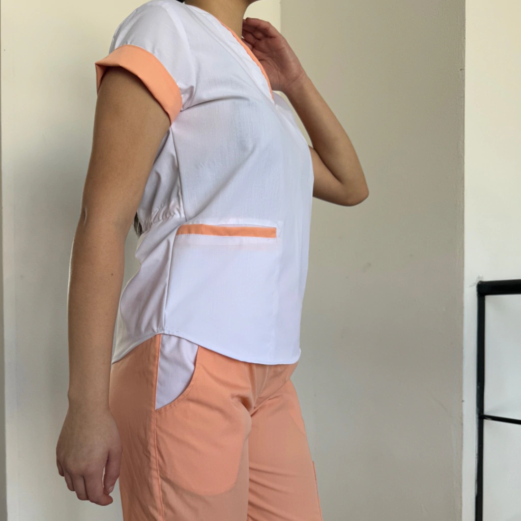 Ambo Mili blanco con vivos salmon pantalon salmon