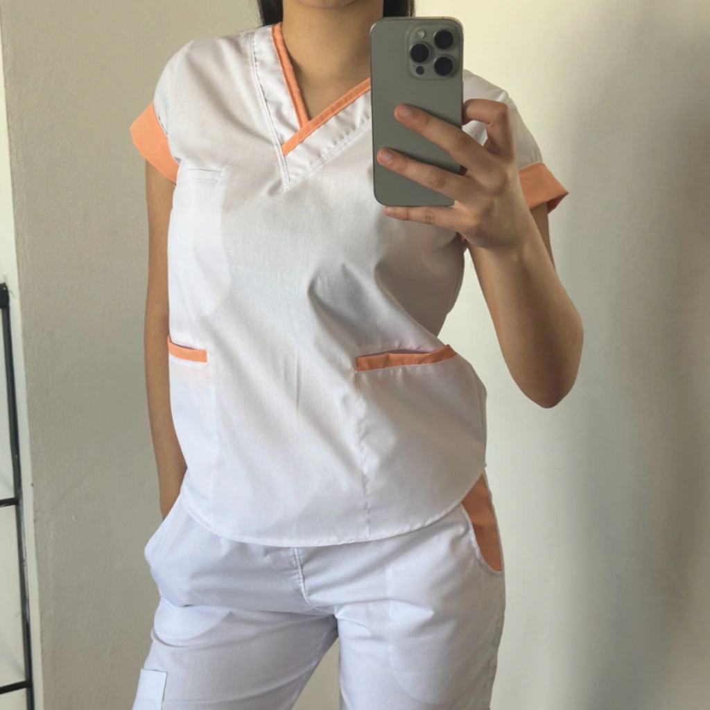 Ambo Mili blanco con vivos salmon y pantalón cargo